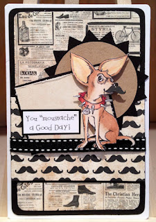 I did not have an image nor sentiment in mind for my card until after I got back home. Going through my Mo Manning images, I found "Introducing Oskar." Doesn't he look like a sweet grandfather? After colouring him up, fussy cutting him out and mounting him to my card, I printed off my sentiment. It was not quite the one I wanted to use, but it works. That same sentiment would also work for birthday -- I don't know why I decided to use anniversary -- just one of those spur of the moment thoughts, I guess. I just felt that the original verse was incomplete and needed the last part to indicated the purpose of the card.